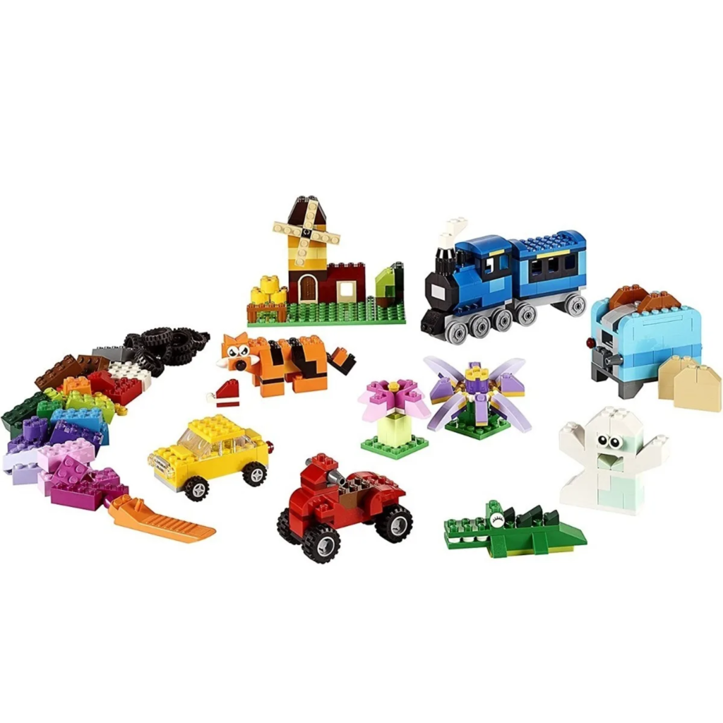 Projetado com construtores de todas as idades em mente, esta coleção de tijolos LEGO® em 35 cores diferentes incentivará a brincadeira de construção sem fim e inspirará qualquer imaginação. Janelas, olhos e muitas e muitas rodas aumentam a diversão e oferecem infinitas possibilidades para construção criativa e brincadeira de veículos. Um ótimo conjunto complementar para qualquer coleção LEGO existente, este conjunto vem em uma caixa de armazenamento de plástico conveniente e inclui ideias para começar a construção. Inclui uma ampla variedade de peças LEGO® em 35 cores diferentes Possui 18 pneus e 18 rodas As peças especiais também incluem uma placa de base verde de 8 cm x 16 cm, janela com moldura e 3 pares de olhos O LEGO® Classic foi projetado para inspirar a criatividade sem limites com o tijolo LEGO Peças especiais estimulam a construção imaginativa Grande número de rodas facilita a criação e a brincadeira de veículos Todos os modelos ilustrados podem ser construídos a partir deste conjunto simultaneamente Ideias incluídas no conjunto e online em LEGO.com/classic para ajudar você a começar Vem em uma caixa de armazenamento de plástico útil A placa de base verde mede mais de 3" (8 cm) de comprimento e 6" (16 cm) de largura Os conjuntos LEGO® Classic são um complemento ideal para qualquer coleção LEGO existente.